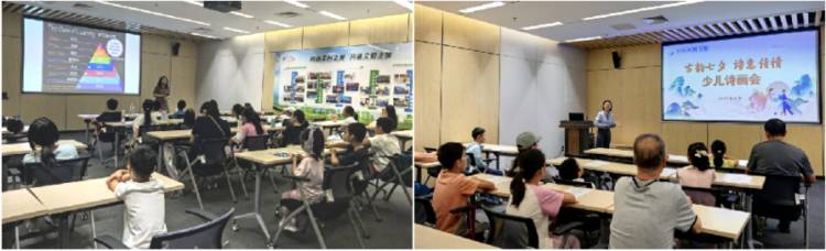 特色主题阅读活动彰显人文温度,八一建军节,“军魂润童心 致敬最可爱的人”绘本故事阅读会,通过《补军号》等红色绘本领读,让爱国情怀在故事中传递;七夕节,“传统文化诗词会”让《迢迢牵牛星》的吟诵声里飘满古典浪漫;暑假伊始的“时间规划讲座”、开学时的“心理赋能讲座”,则帮助小读者们解决成长中的困惑。