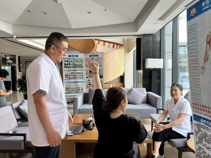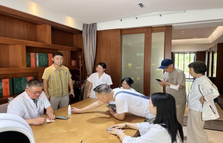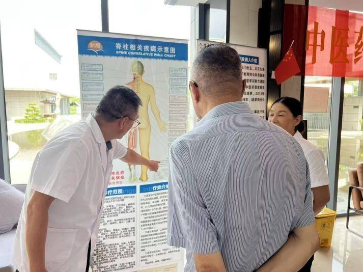 张少华院长在给宾客诊疗后,还现场为宾客讲解人体脊柱、经络保健等实用知识,人体软组织疼痛和炎症与脊柱损伤的关系。他讲到80%以上的慢性病痛源于软组织损伤或劳损后遇寒凉而形成的瘀堵,导致气血循环不畅、炎症迁延。让他们了解中医理念;直观呈现中医外治的康养效果;让康养理念真正融入宾客的日常起居。