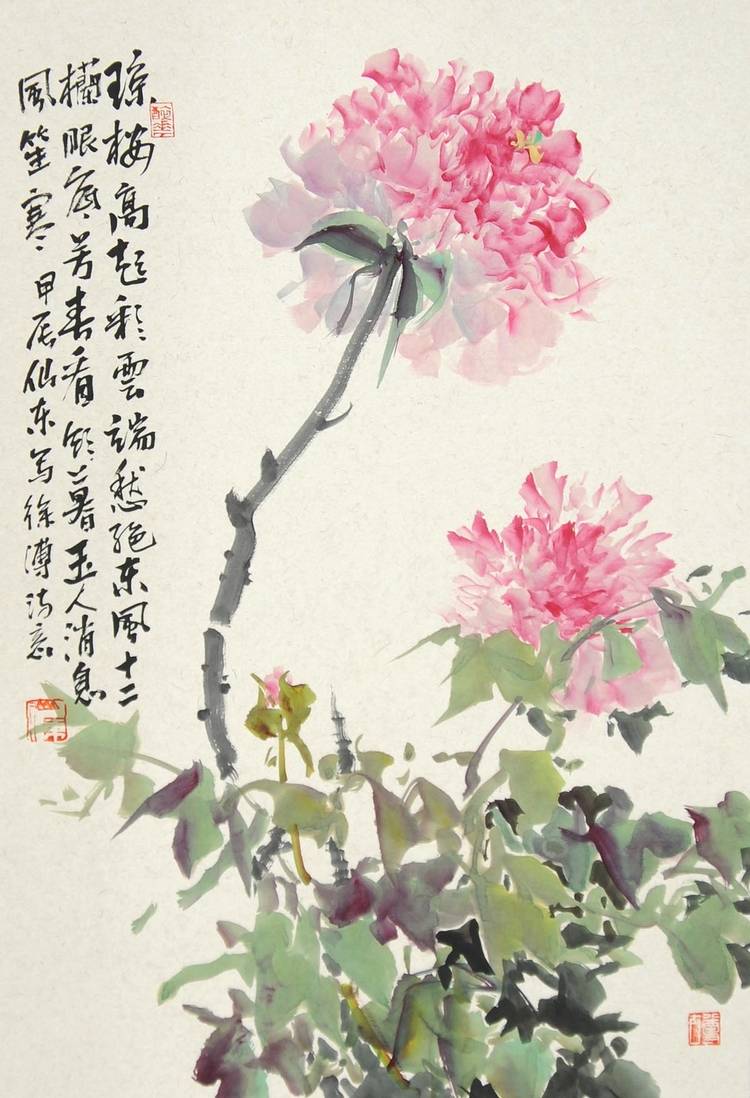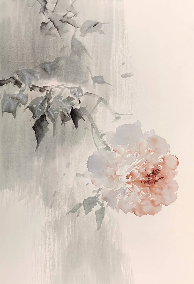 7.牡丹的美,从物像本身上看,有几点:花大色艳,是花王之美;水嫩清透,是少女之美;老干虬曲,是茁壮之美;姿态各异,是灵动之美。以上几点的标准,能切中太多的牡丹绘画不足之处,如有人画的牡丹颜色固定,颜色厚且脏,枝干不够舒展。因为达标程度不一样,所以有的人画,有的像是牡丹皇后,有的像是牡丹公主,有的像是牡丹帅哥。而那些做不到的,则像是牡丹大妈,甚至是花圈牡丹。