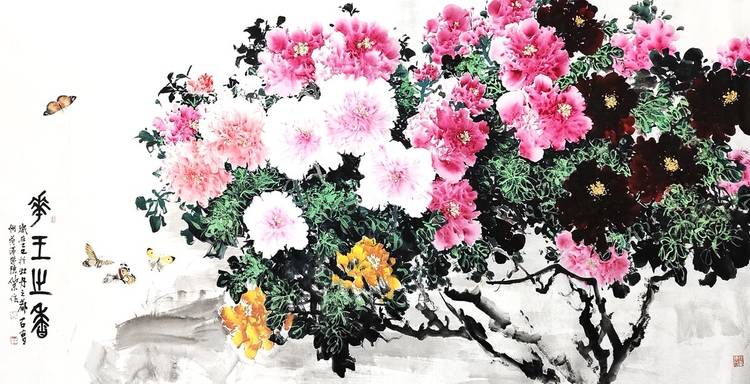 《曹州牡丹冠群芳》六尺整张98x180cm