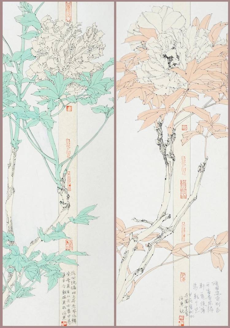 3.光是菏泽的曹州牡丹园,品种就达一千多种,分为九大色系,十大花型,既然是写生牡丹,怎么才能检验你写生到位了呢?起码能把这些不同品种的牡丹能单独画出来,甚至每一个品种的叶子肥瘦粗细都不一样。而不是一上来就耍自己平时那几笔,这不叫写生,这叫表演。