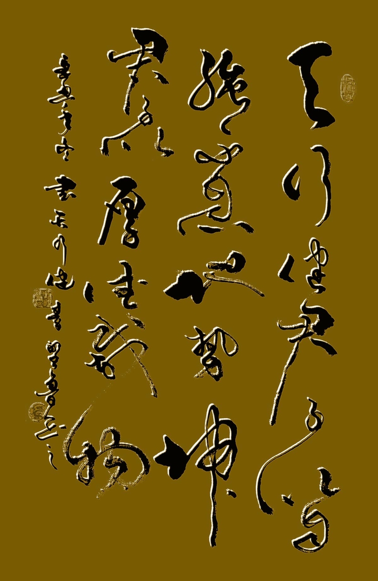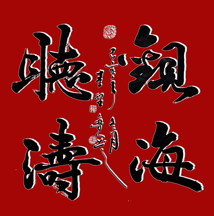 风格融合与创新:在继承传统书法精髓(如王羲之、张旭、怀素等)的基础上,融合个人逸格,形成“劲健秀逸与奔放淋漓兼备”的独特风格。其作品法度森严却气象万千,兼具古风今意,尤以草书见长,代表作《天行健》被誉为“超凡脱俗”的典范。多体兼修:精通行、草、篆、隶、楷五体,作品细腻精致且气韵生动。篆刻亦为所长,治印千余方,刀工老辣意趣高远。