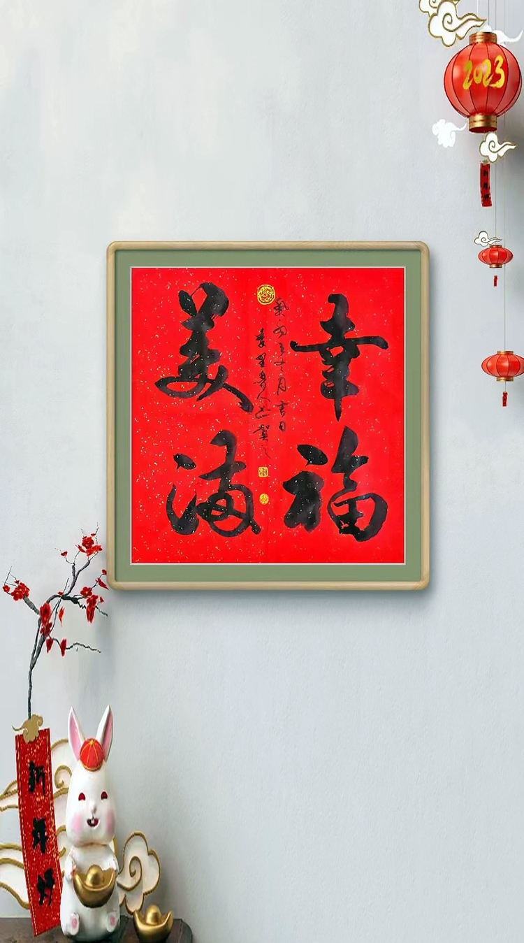 四尺行书斗方《龙凤呈祥》装饰效果图