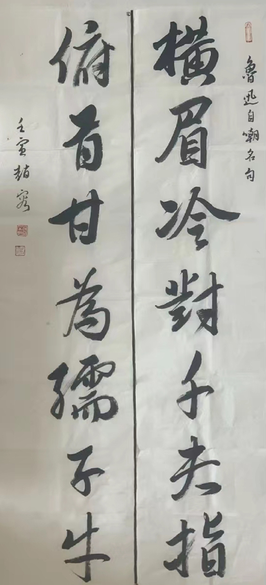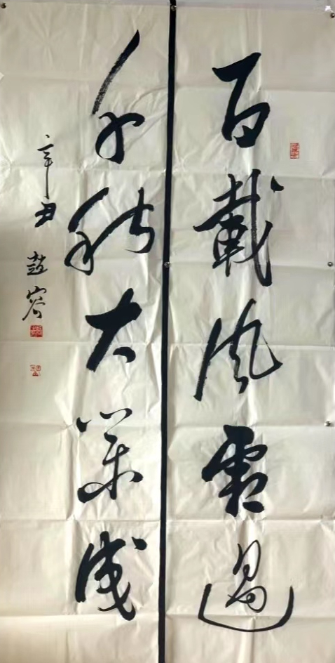 刘熙载《书概》中云:“俗书非务为妍美,则故托丑拙。美丑不同,其为为人之见一也。”刘氏认为“妍美”和“丑拙”作为书法的不同风格, 没有所谓的好与不好,其本身都有着欣赏价值,可如果书者“务为”“故托”,就是造作、不自然,毫无书法的本真之意,就沦为“俗书”了 。所谓“俗书”,指的是书法旨趣庸俗、低俗、媚俗之书。比如那些打着艺术创新的幌子,借助书法元素进行的“倒立书法”“人体书法”等娱 乐至死的杂耍表演;或是为了迎合大众审美需求而不讲书法内在规律和审美本质,只在意花里胡哨、肤浅直观的外在形式,并美其名曰“非书 胜于书、非画胜于画”;或是不临经典、不知笔法,“任笔为体,聚墨成形”,实为“往往仅能执笔”而已。还有些书者不乏书写技巧,用笔板实呆滞、结字状如算子,由于不知通变而缺乏个性和应该具备的生命精神,渐趋于庸俗。“俗书”在很大程度上改变和误导了大众对书法 概念的认知和书法审美观,加剧了以俗为美、以怪为能的畸形审美观。而观赵老师书法作品,可以说皆跳出以上之弊病,在“起、行、收、提、按、转、折”的法度中,她不是说写得有多好,但来自正统,在法度中尽情地展现了自我不俗风格,这也恰是书法艺术之真谛所在。当然任何作品皆有瑕疵,笔者以为赵老师作品也有不足之处,比如在章法布局上欠佳,行草中善用的笔画线条的夸张飘逸有商榷空间 ,给人以视角冲击力的字眼处理尚待提高等,这些不成熟看法算是笔者拙见了,只求抛砖引玉了。