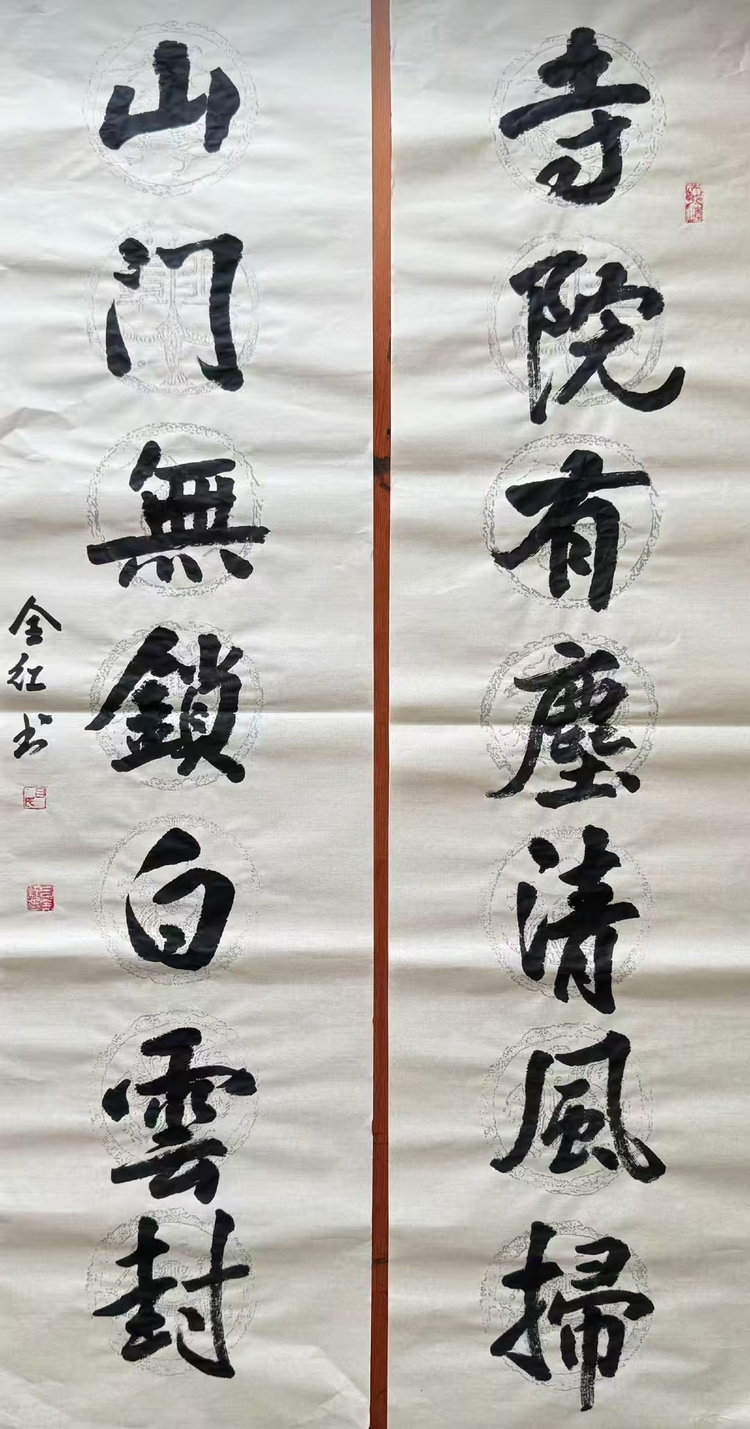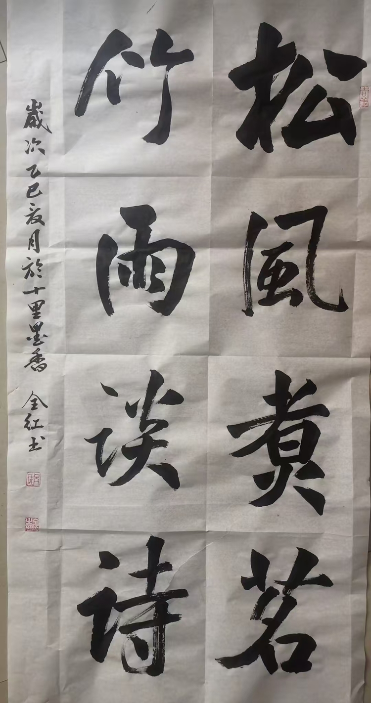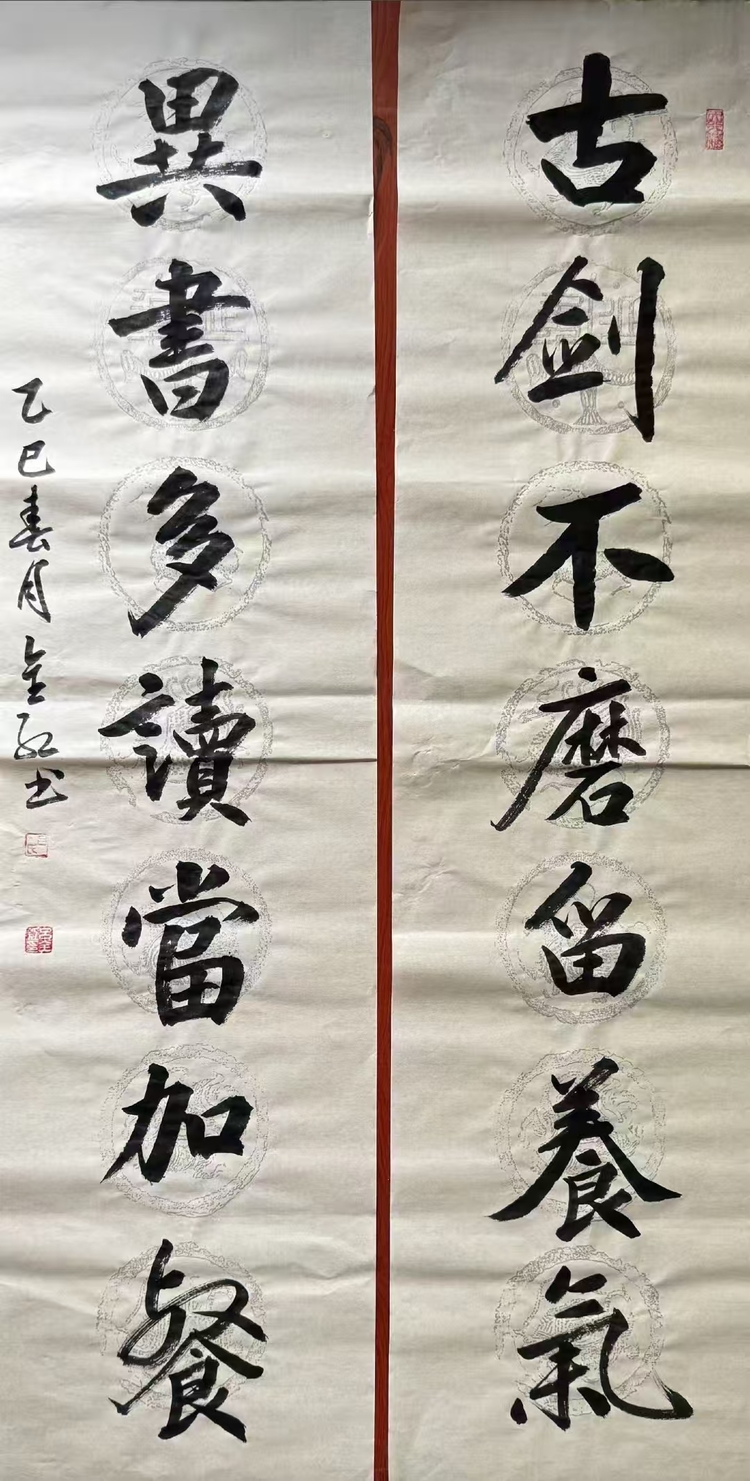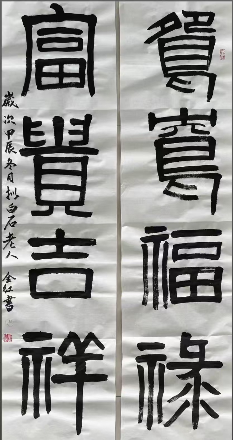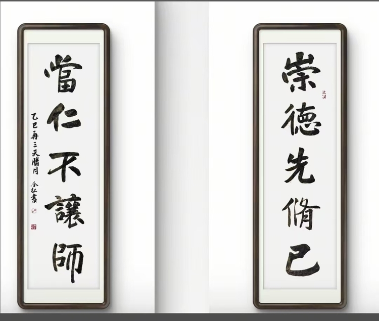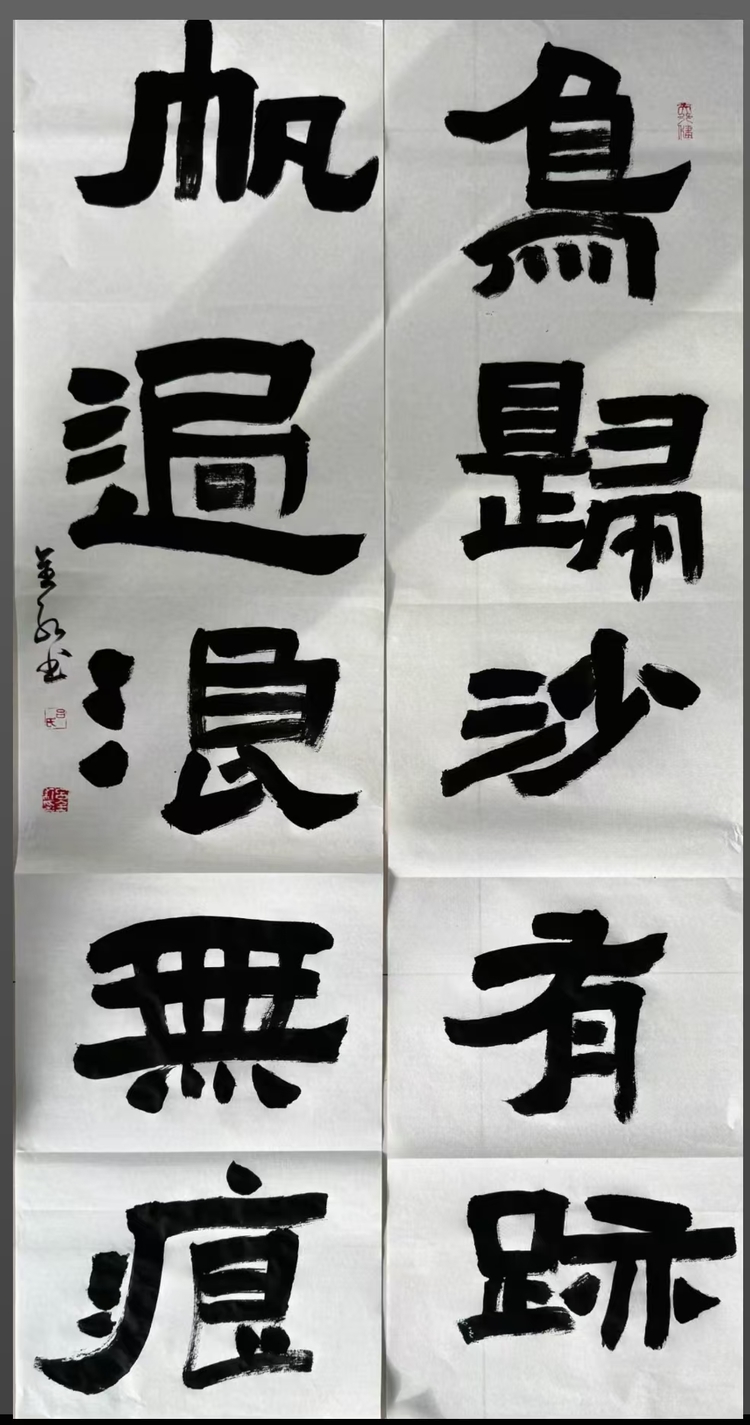 吕老师的系列书法作品,以其独特的艺术风格和深厚的文化内涵,已成为了当下中国书坛一道亮丽风景,值得我们细细品味,深深敬仰。当然人无完人,艺无止境,笔者以为吕老师作品也有不足之处,比如某些字的结体显得过于紧凑,个别字的结构又略显夸张,线条的起伏变化有的还要更严谨些,同时有的作品落款字的大小与正文也稍显不协调。刍荛之见,以供各位方家商榷。然而,即便如此,这些小瑕疵并未掩盖住其整体的艺术价值。在未来的日子里,愿我们都能像吕老师那样,继承传统以笔为舟,以墨为海勤修苦练,也去书法的海洋中遨游一番,为国家2035年文化复兴贡献一分力量。