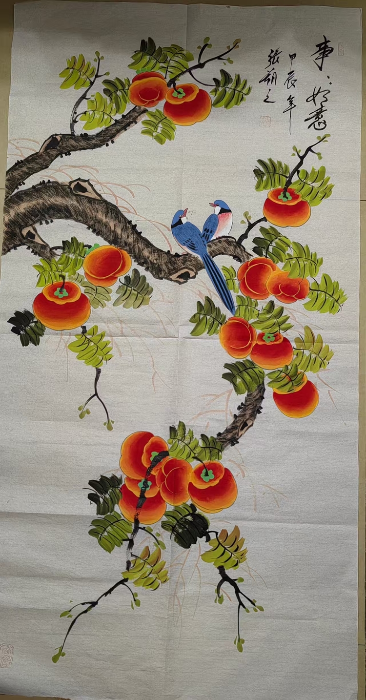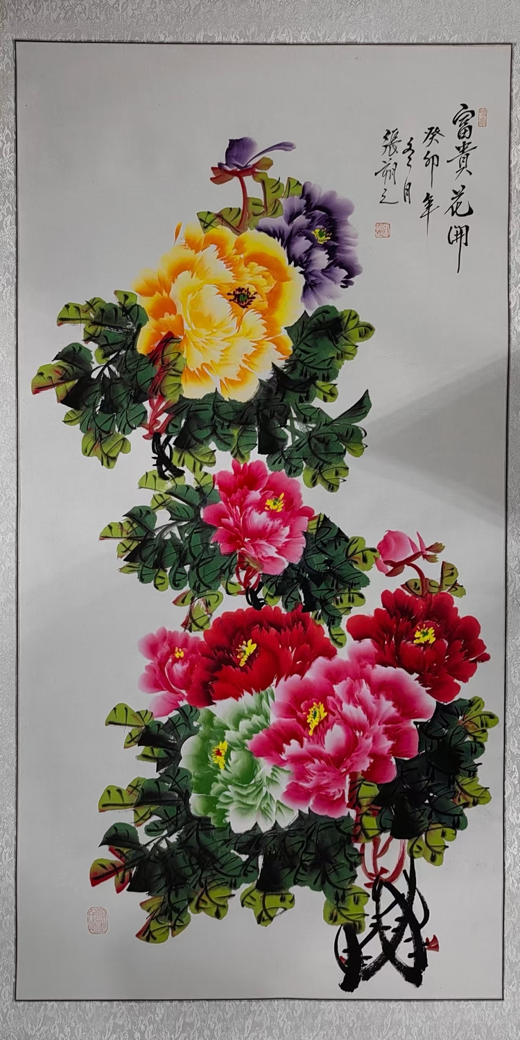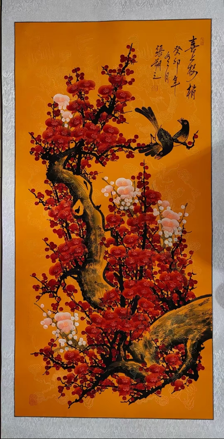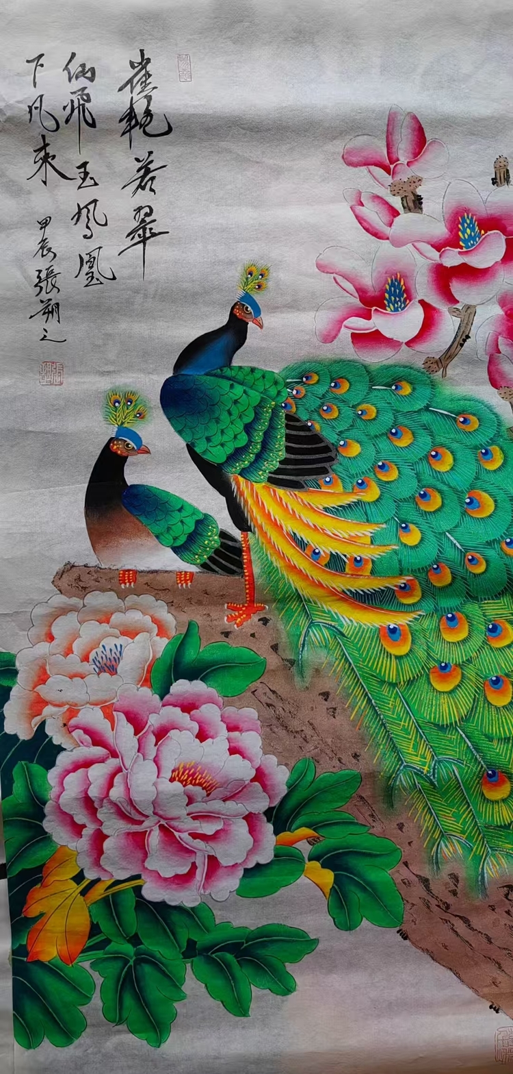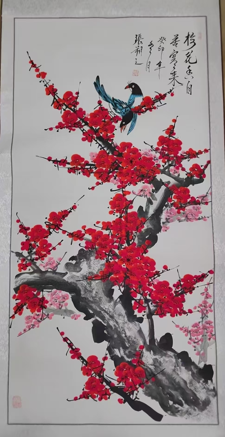 历代名家在国画花鸟领域留下了无数珍贵的作品和丰富的艺术经验。从徐燕生的清新淡雅到齐白石的率真自然;从吴昌硕的雄浑豪放到潘天寿的奇崛险峻……这些大师们以各自独特的艺术风格和成就,为后世树立了楷模。而当代花鸟画家们在继承传统的基础上,不断探索创新,以更加多元和包容的视角审视自然与艺术的关系,为国画花鸟注入了新的活力。张老师的花鸟大写意也是值得大书特书的,当我们站在他的花鸟作品面前,首先映入眼帘的便是那一幅幅精妙的构图。在有限的画布上,他通过巧妙的布局,将花鸟的形象与空间、背景相融合,形成了一种和谐而富有节奏感的画面。他以突出其形象和情感表达的技法。细节处理则讲究虚实相生、阳阳互衬,以营造出一种深远的空间感。这种构图之巧,不仅展示了画家高超的技艺,更引导着观众深入画面,感受其中精妙的韵味。