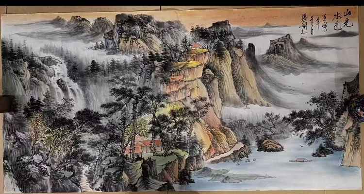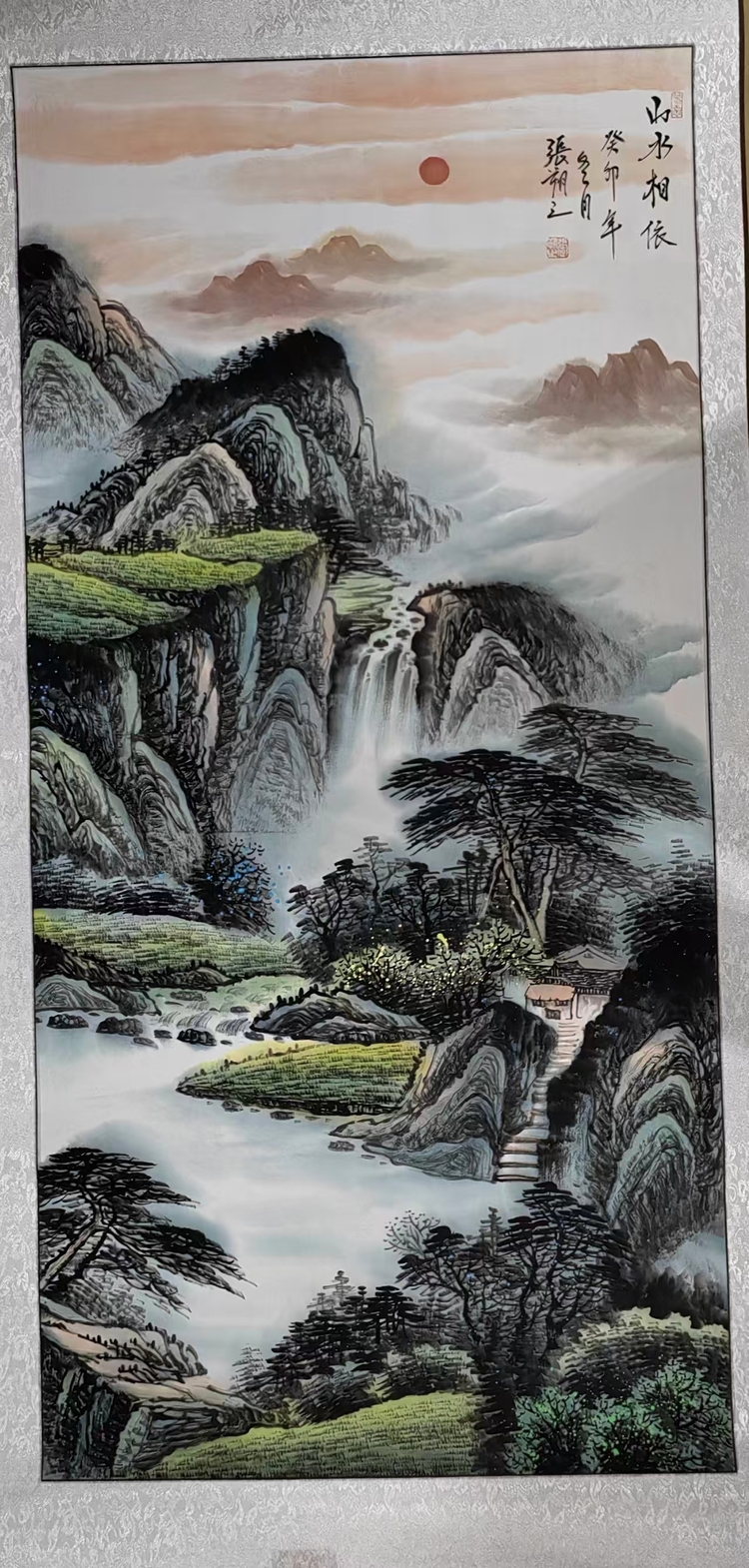 在用墨法方面,张老师也同样展现出高超的技艺。他善于通过浓淡、干湿、疏密等不同墨色的变化,营造出丰富的层次感和立体感。墨色的厚重之处;如深沉的山峦,蕴含着无尽的力量;墨色的浅淡之处;则似缥缈的云雾,给人以空灵悠远之感。有时,他大胆地运用泼墨手法,让墨汁在宣纸上自由流淌、交融,形成自然而奇妙的效果,仿佛大自然的鬼斧神工在纸上重现。而在细腻的地方,他又能以精致的墨韵,描绘出微妙的细节,使画面既有宏观的气势,又有微观的精妙。这种灵动线条与厚重墨法的完美结合,构成了他国画独特的笔墨基础,为其作品风格的形成奠定了坚实的基石。张老师还精通刀笔油画,其作品精妙绝伦独树一帜!
