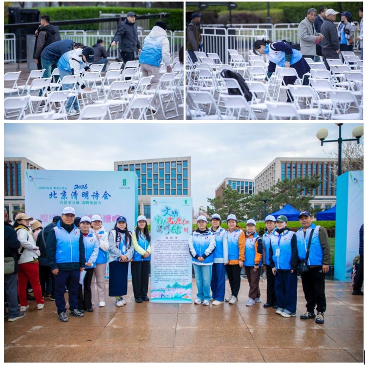 此外,为弘扬时代新风,深化移风易俗,守护生态环境,筑牢公共安全防线,石景山区文化志愿者服务分中心(石景山区文化馆)在清明诗会现场开展"文明志愿红守护清明绿"清明节主题宣传活动,以志愿之力传文明之风,为建设和谐,美丽,文明的石景山贡献坚实力量。